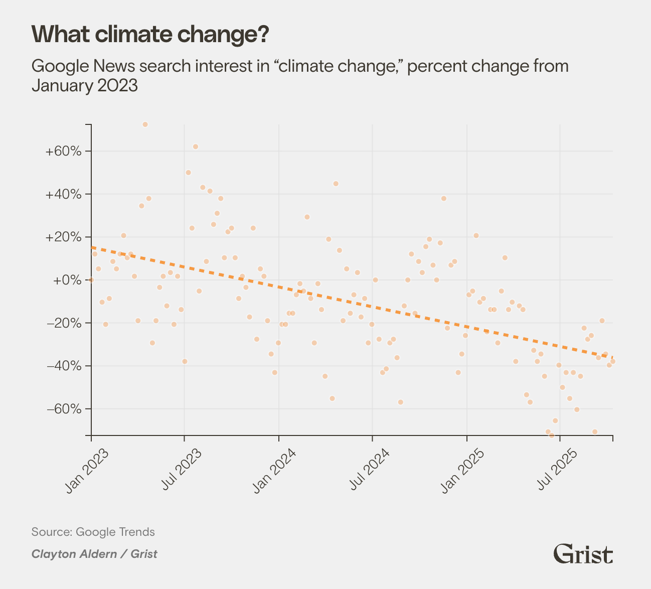 This week, Grist published a chart showing a sharp decline in news searches for the term “climate change.”