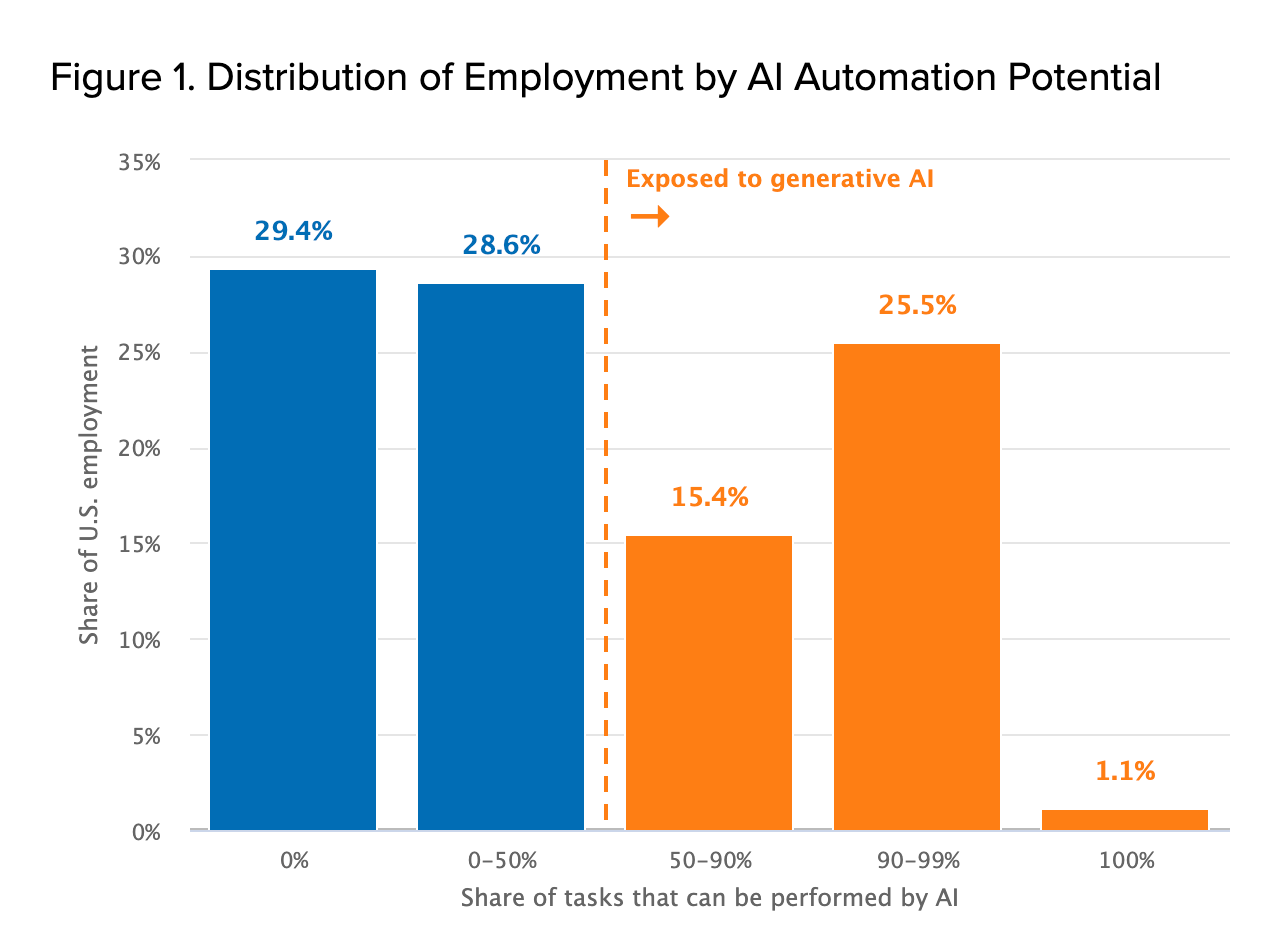 The study argues that half of the work of these high income earners can be done by AI today. The researchers found that in more than a quarter of US employment, AI can perform between 90 and 99 percent of the work required with minimal oversight.