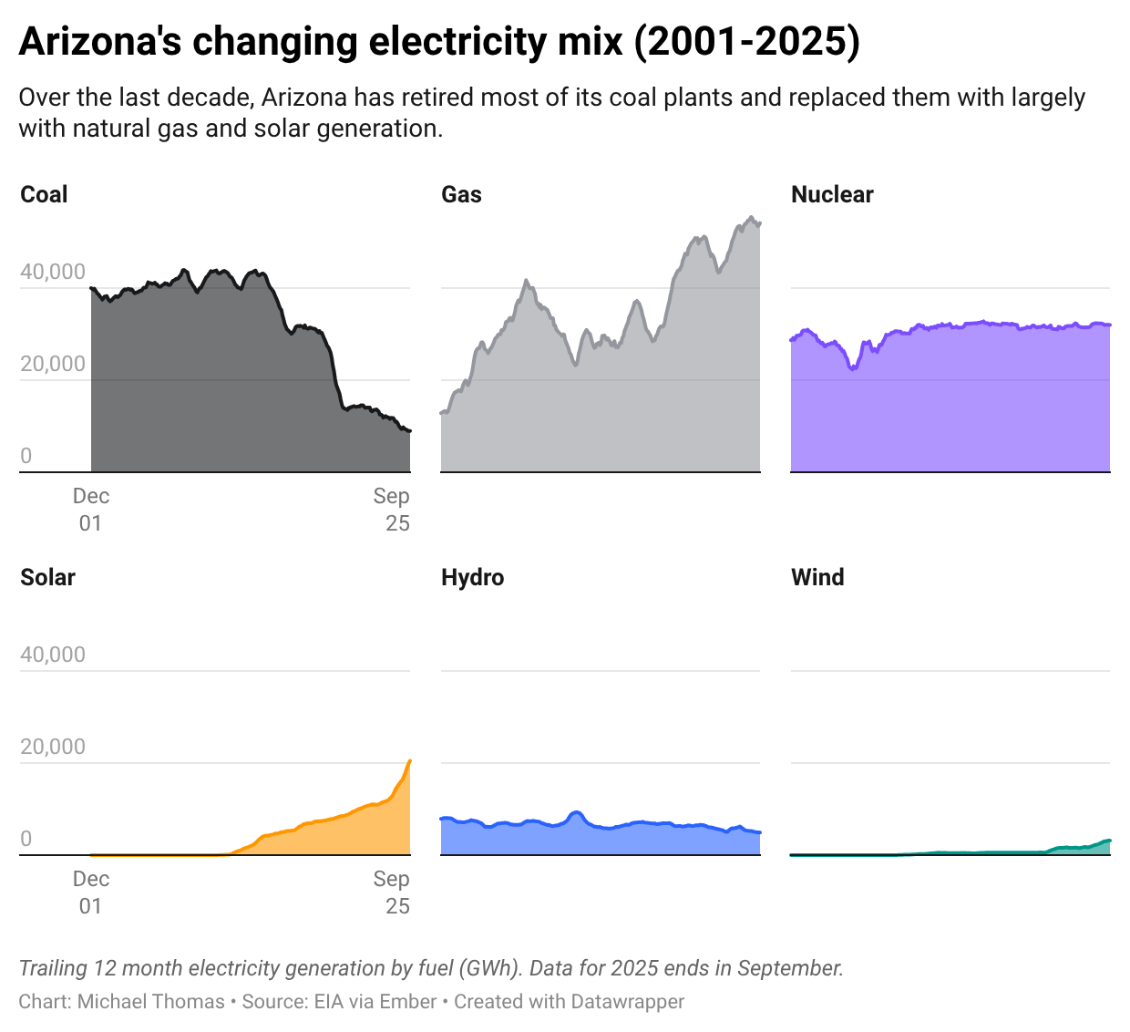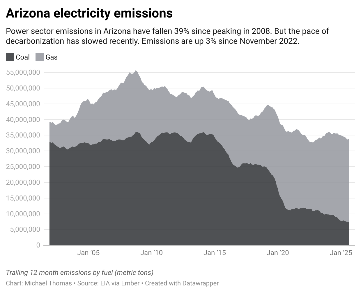 But solar and short-duration batteries provide hardly any power to these machines when it’s 3am. That’s one reason why, after falling for more than a decade, Arizona’s electricity emissions have risen by 3% since ChatGPT launched in November 2022.