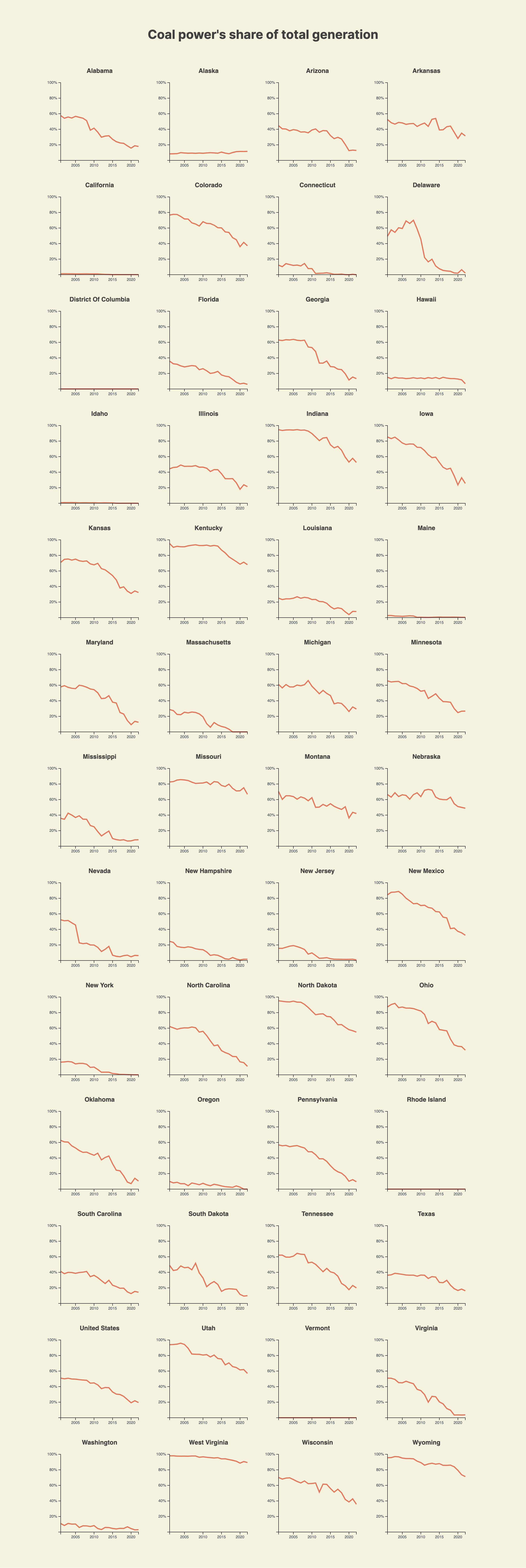 As shown in the charts below, the speed and scale of coal’s decline has varied widely from state to state.