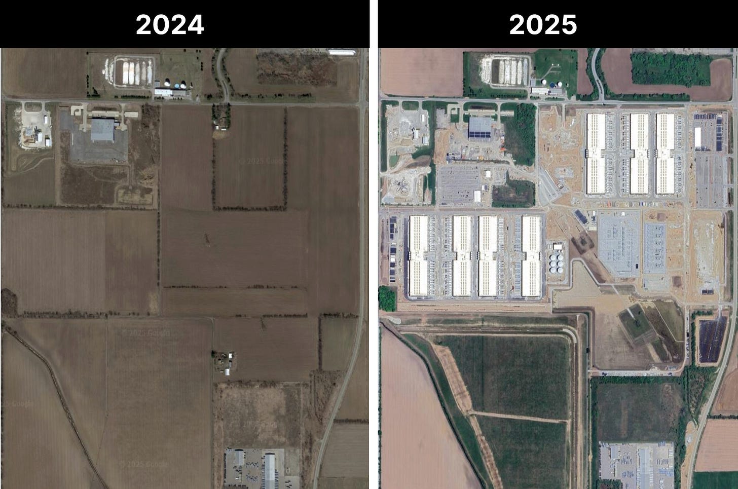 Amazon’s new data center in Indiana went up as quickly as Stargate. In early 2024, the site was nothing more than corn and soybean farms. Today, the first seven buildings are consuming about 525 MW of power.
