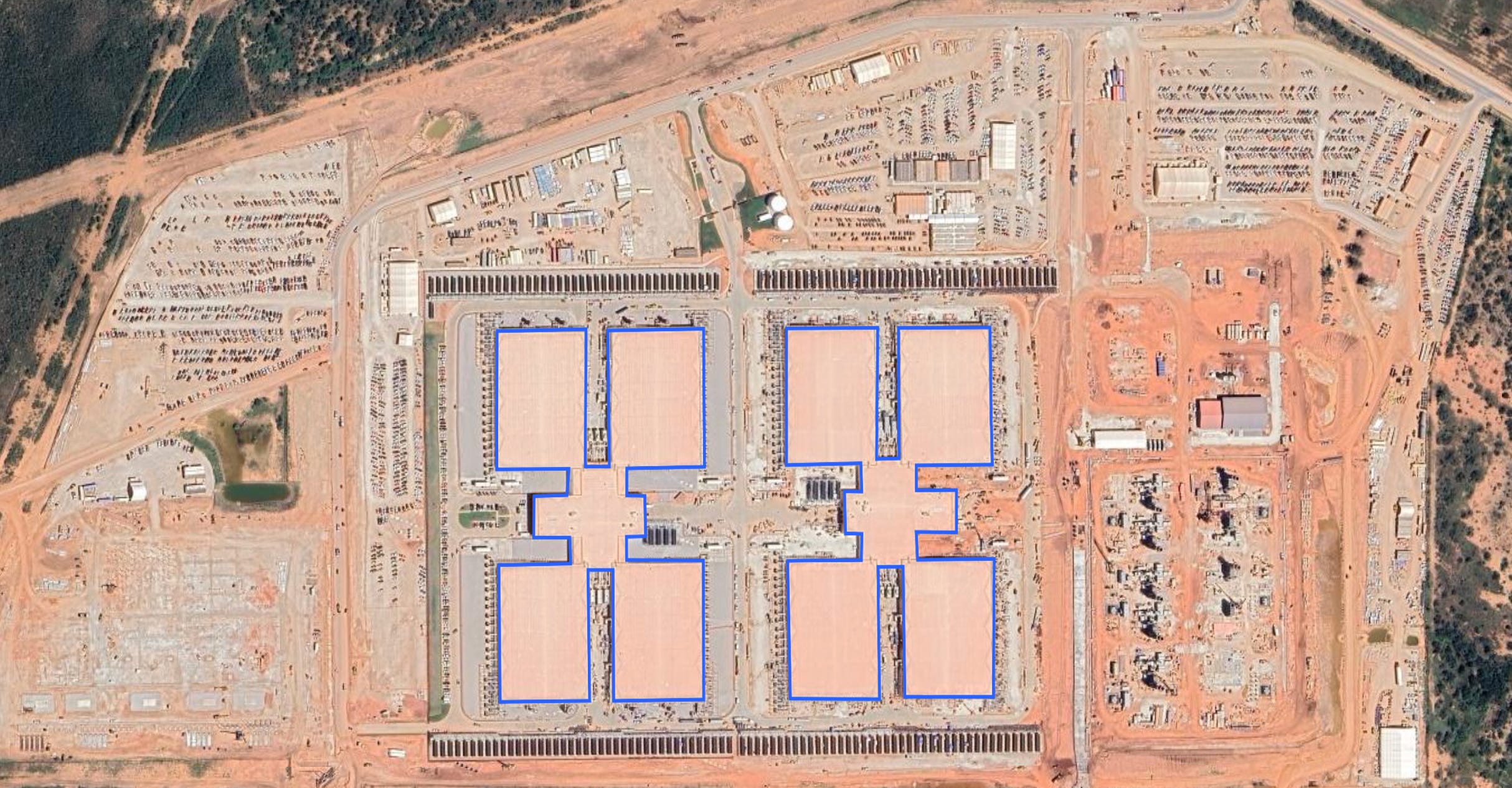 It’s hard to really put the scale of this project in perspective. One way to do it is to look at the project from space. The satellite image below shows Stargate’s first two buildings. Each of those tiny little dots in the top left and top right are construction workers’ cars. There are about 6,000 of them shuttling workers to the site each day.