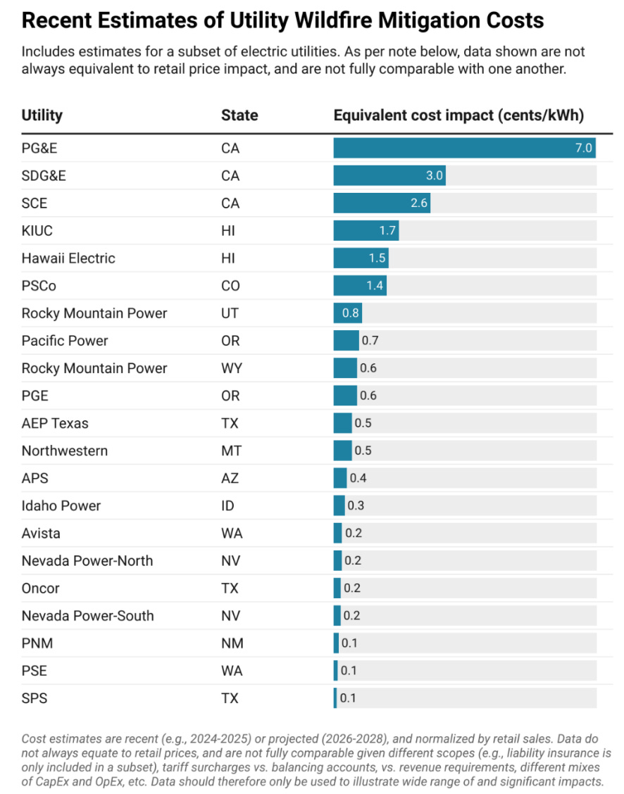 In California this has come at an enormous cost. PG&E customers are paying 7 cents per kWh for wildfire mitigation alone. That’s equivalent to about half the cost of electricity in many states—all going to prevent future wildfire risk.